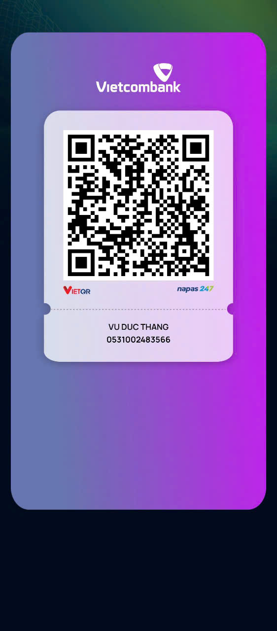 • Tên chủ tài khoản: VŨ ĐỨC THẮNG